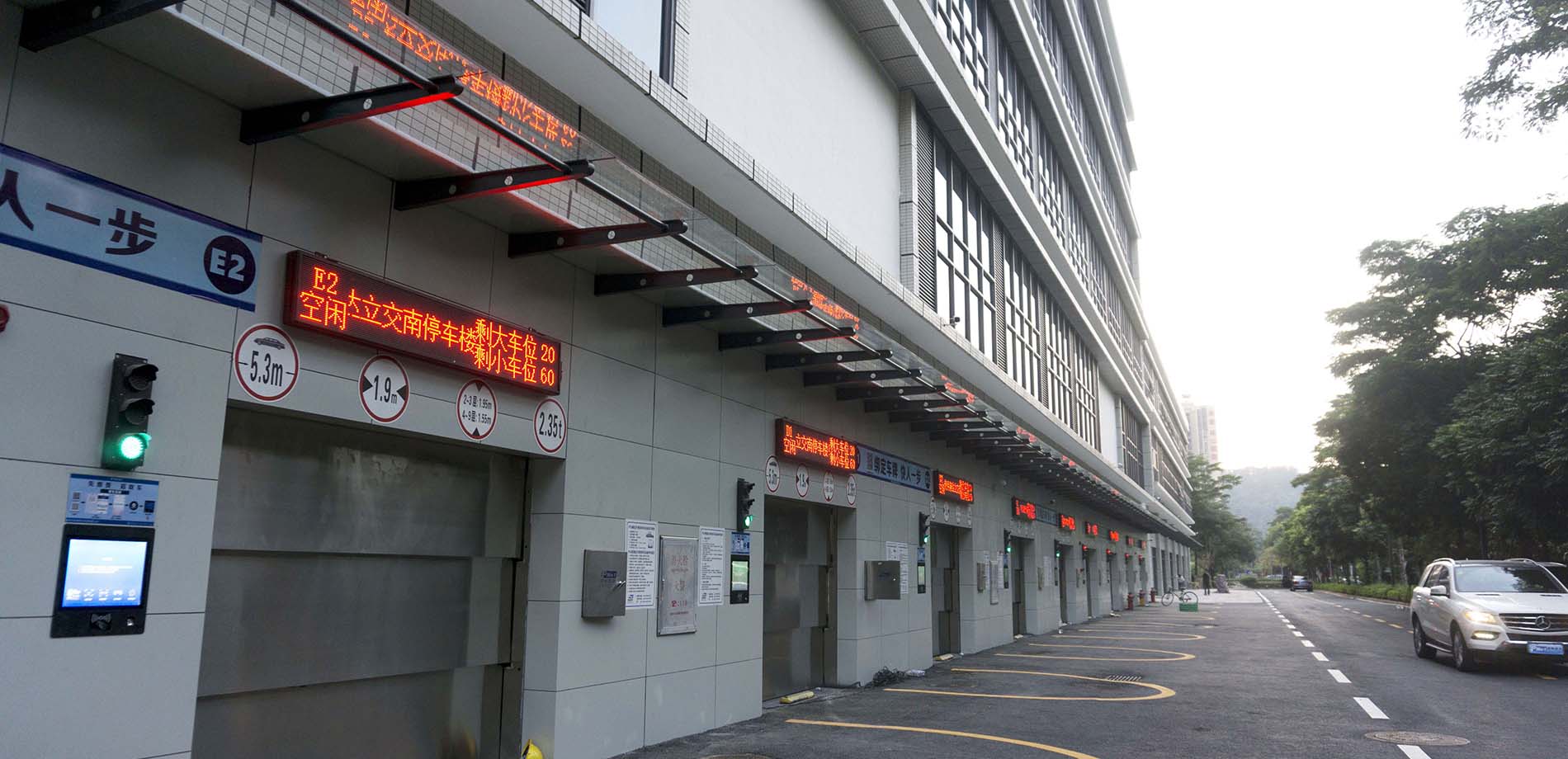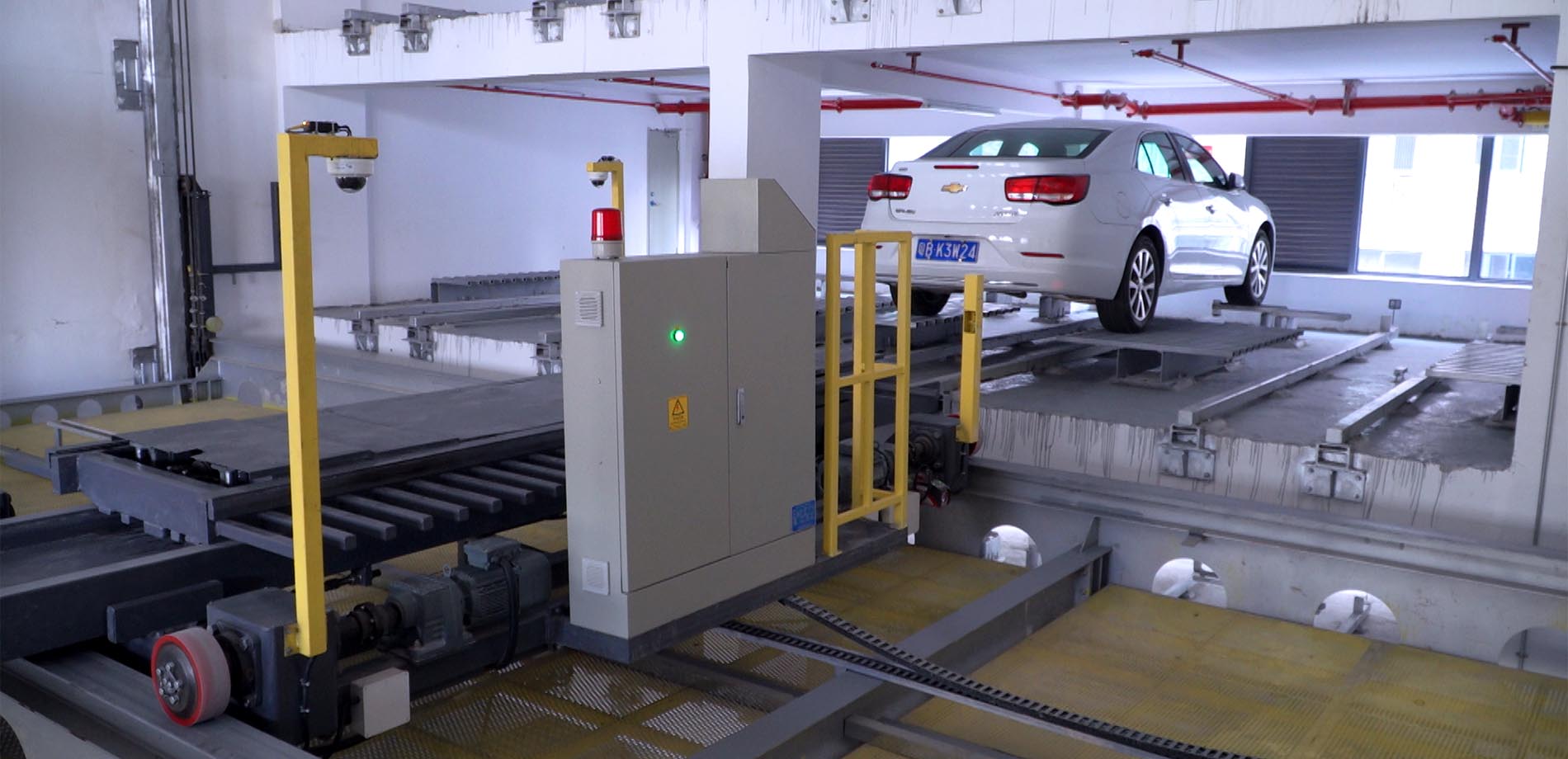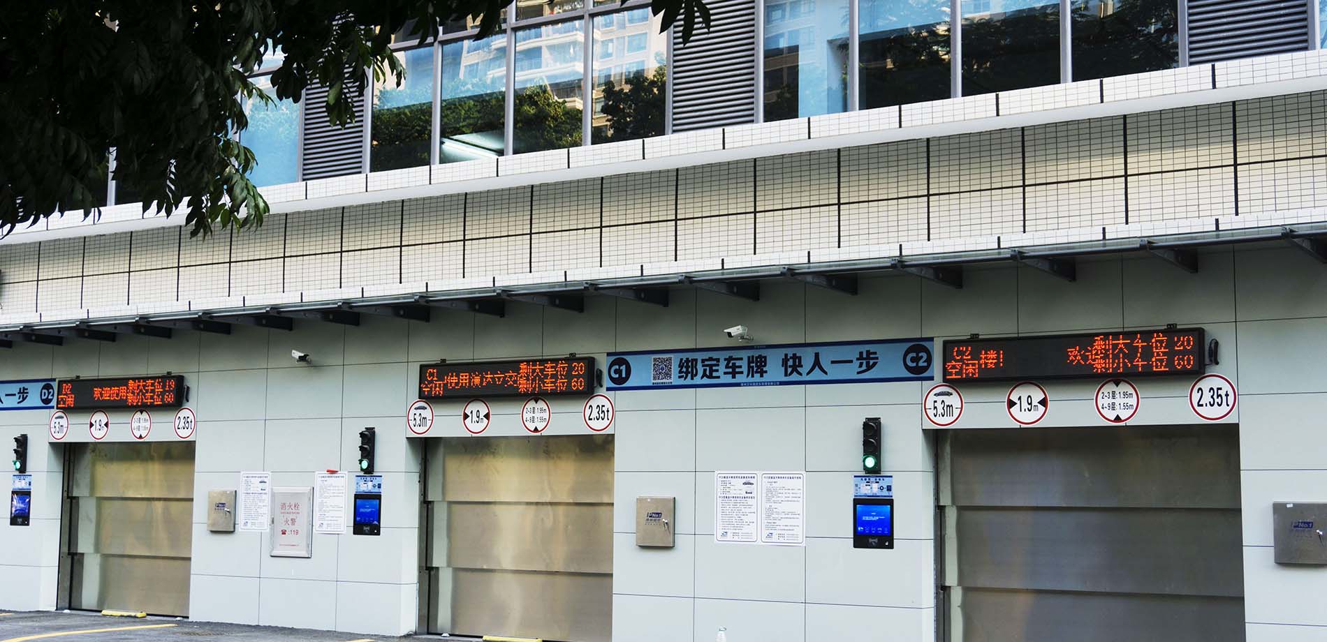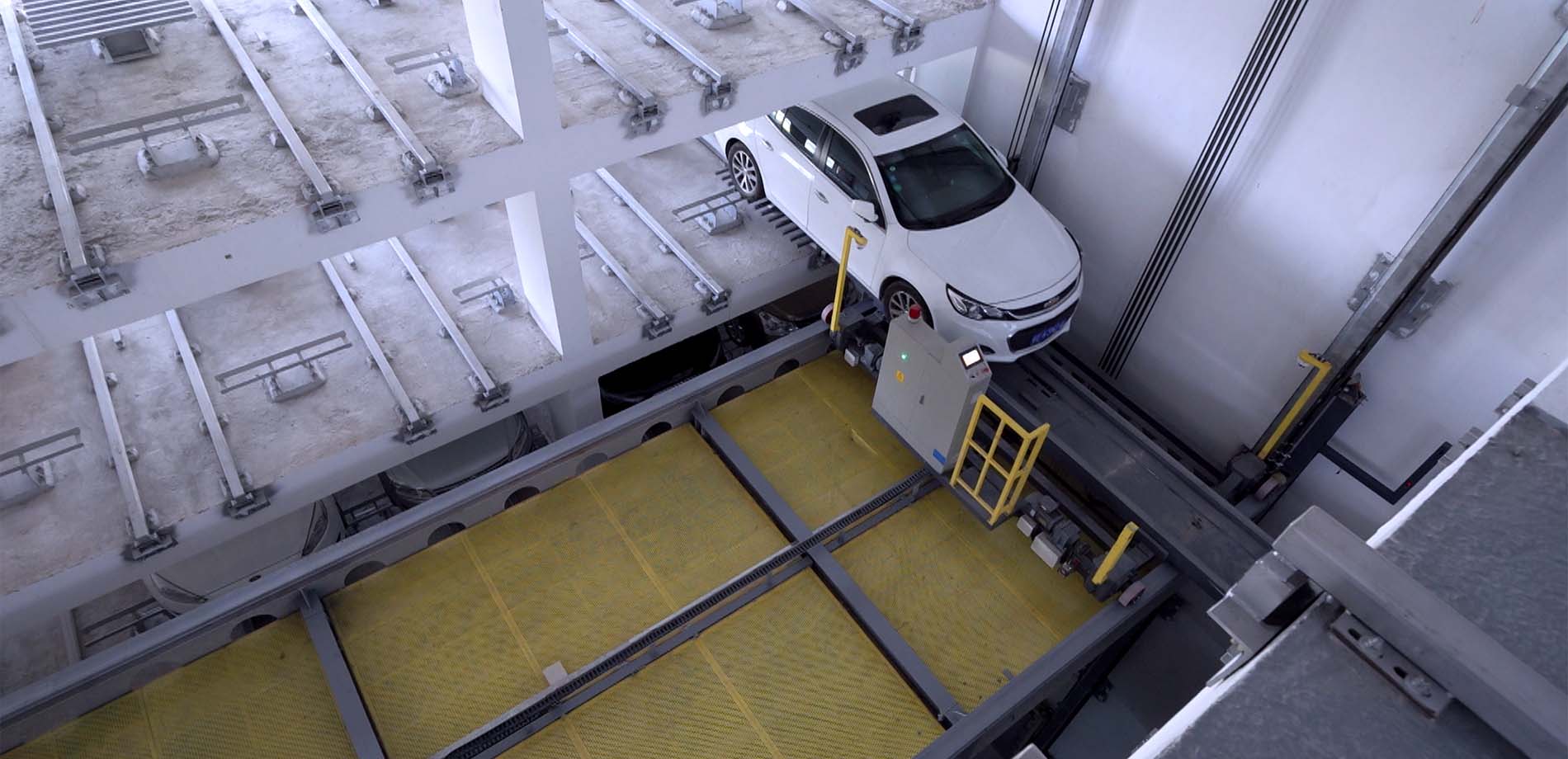本项目为垂直升降类梳齿式立体车库,一共9层,车库配备5套升降机,5套平移车及搬运器,10个出入口,可以满足周边的停车需求。